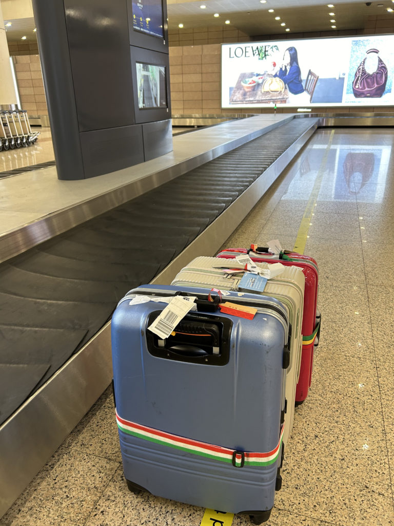 今回は到着から入国手続き完了までに2時間半もかかったので、荷物を取られてないかと心配しましたが、無事荷物がくるくるマシーンから降ろされた状態で待っていてくれました。