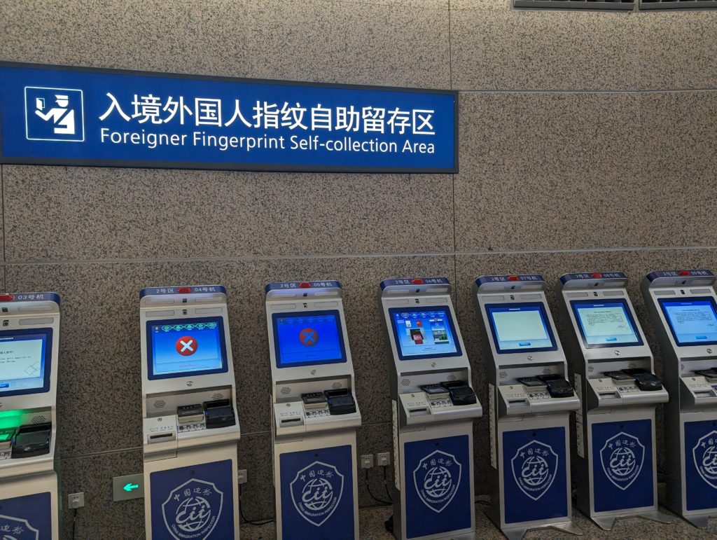 ここでパスポートをスキャンし、機械の指示に従って両手の指紋を登録します。